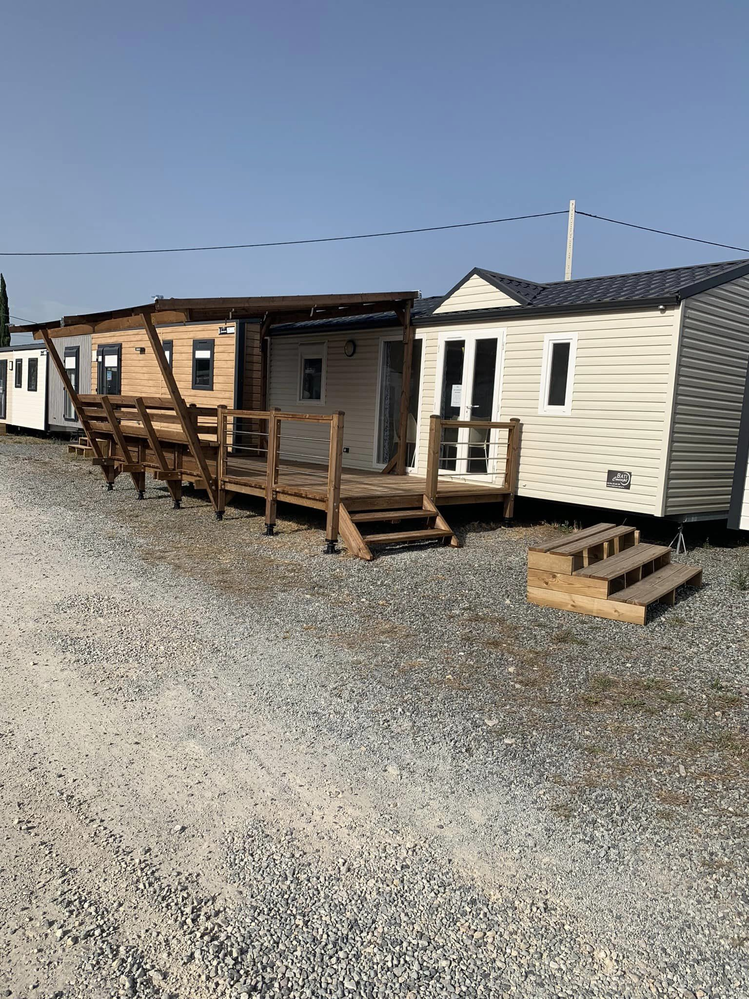 La terrasse est l'extension de la vie mobil home. Cela permet de profiter d'une superficie in out de plein pieds. Et suivant les parcelles pas toujours facile de pouvoir se permettre de le faire.