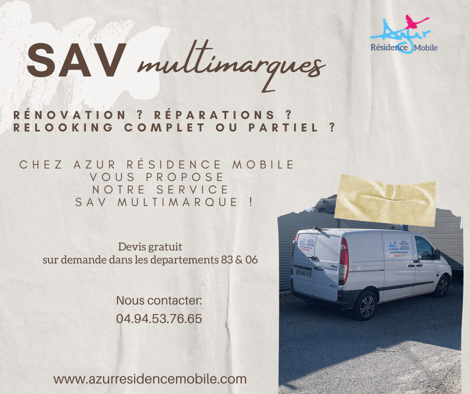 Azur Résidence Mobile es el distribuidor recomendado para la venta de accesorios y repuestos para casas móviles en Roquebrune-sur-Argens. Disponemos de recambios multimarca para el interior y exterior de tu mobil home. Posibilidad de instalación sobre presupuesto.